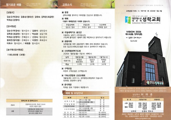 2026년 1월4일 주보 페이지 정보 작성자 하나냐 댓글 0건 조회 274회 작성일 26-01-03 18:32 목록 본문 2026년 1월4일 주보 이전글2026년 1월11일 주보 26.01.10 다음글2025년 송구영신예배 25.12.31 댓글 0 댓글목록 등록된 댓글이 없습니다.