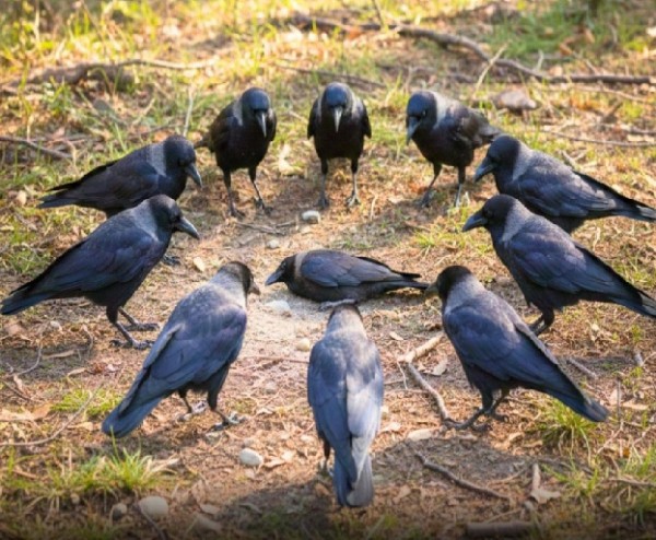 그런데 까마귀의 실제 습성은 좀 다릅니다. 까마귀는 동료 까마귀가 죽은 곳에 모여 들어서 10분 정도 구슬픈 울음소리를 냅니다. 그리고 침묵 속으로 빠져듭니다. 그래서 사람들은 까마귀들이 모여서 장례식을 치르는 것이라고 생각합니다.
